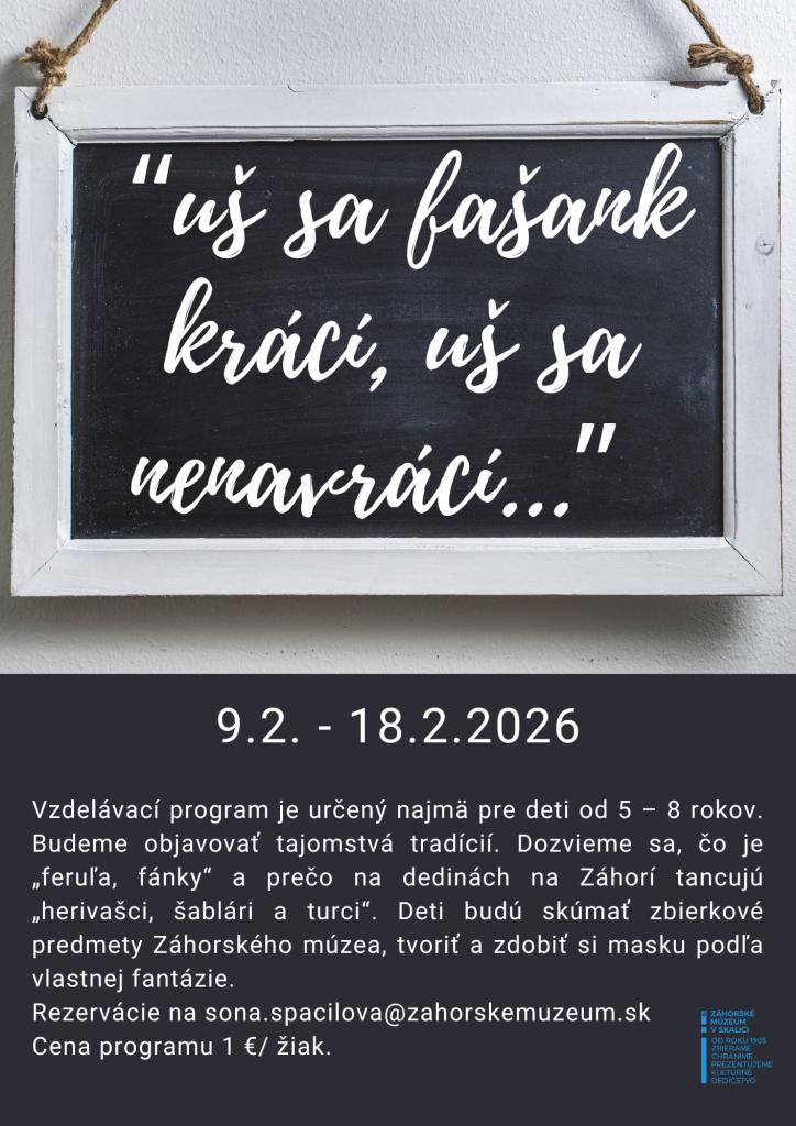 Rezervácie na e-mail: sona.spacilova@zahorksemuzeum.sk
